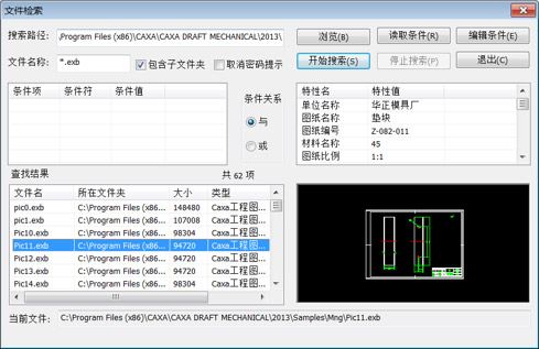 文件检索:可按设定的检索条件搜索CAD文件。