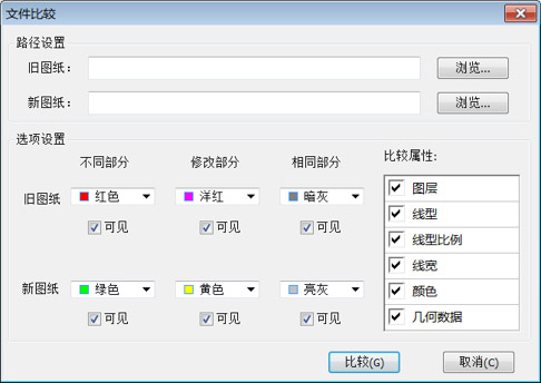 文件比较:可按给定参数将图纸的不同部分、相同部分显示出来,以便提高审图效率。