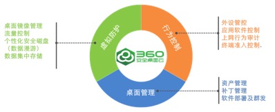 360桌面云管理系统是在简化IT管理、确保信息安全以及保障企业内部网络不受病毒侵扰的理念指导下,基于虚拟化技术研发出的桌面安全和管理系统。该系统以桌面虚拟化技术为底层核心,以终端系统管理为中心出发点,从虚拟防护、桌面管理、行为管理、行为控制等多个角度构建一套完整的桌面云管理体系,防御各种桌面异常事件,通过技术手段全面贯彻落实各单位的桌面管理策略。