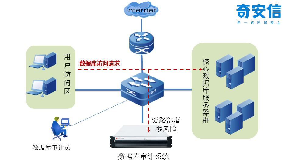 数据库审计系统可应用于大中小型企业,可旁路部署于用户交换机处,利用镜像流量方式审计,也可通过agent引流方式进行数据库审计。
