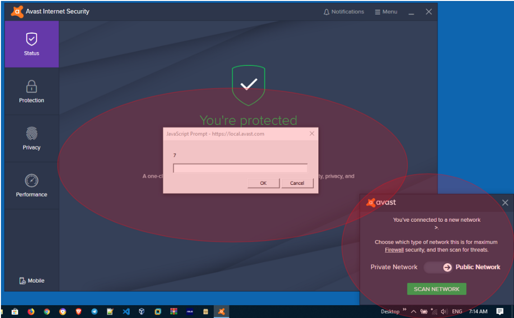 我有点困惑,然后我发现我曾经在OS X系统中的SSID包含XSS Payload的无线网络上安装Avast防病毒软件。 现在,Avast防病毒软件突然连接到该无线网络,并且内置了防火墙。Avast网络通知触发了包含XSS有效载荷的SSID。 由于弹出窗口,形成了XSS漏洞。
