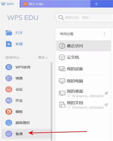 作为教师是否使用一个教育产品,最重要的判断依据是,是否有高质量的教育资源。在WPS教育版中,点击WPS图标后,再点击备课,就可以看到相关的课件资源啦。