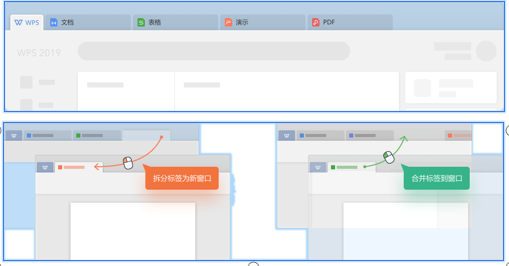 所有标签都可以按工作需要拖放拆分和合并。