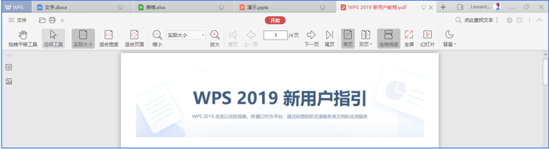 WPS 2019 改变以往的视角,将窗口作为平台,通过标签的形式承载各类文档和应用服务。
