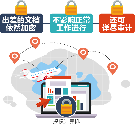 允许外出继续使用加密文档,文档仍保持加密状态,只能在被授权的计算机上使用。