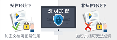 能对电子文档进行强制性的透明加密,授信环境下加密文档可正常使用,非授信环境下加密文档则无法使用IP-guard会在加密文档的使用过程中默认禁止截屏、打印,以及剪切、拖拽加密文档内容到QQ、Email等可能造成泄密的应用