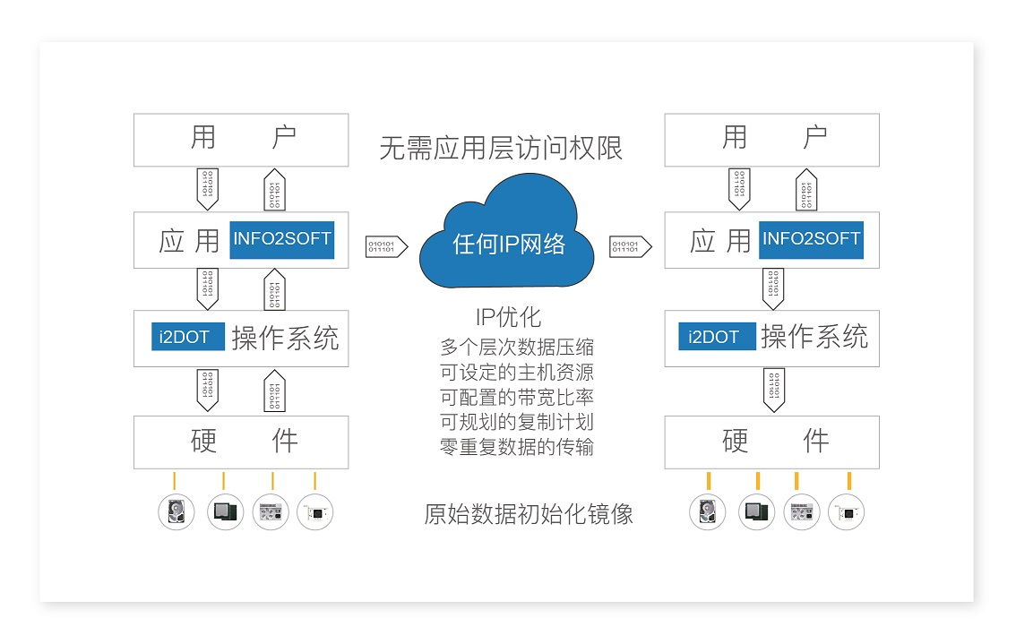 字节级复制i2COOPY以字节为数据捕捉的最小单位,而不是以传统方式上的文件或者块为单位,从而极大地缩小了需复制的数据量