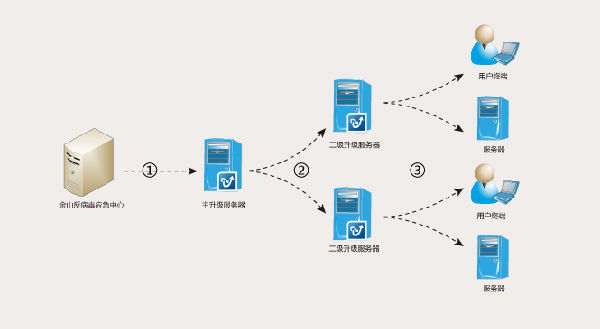 在各部门分别部署金山独霸网络版客户端和服务器端,在较大部门网络内部署系统中心和二级升级服务器,形成区域防护体系,并按照需要设置下级管理员,通过登陆系统中心控制台实现对本地网内受限管理。 对于跨地域分厂,部署“本地防护体系”,“本地防护体系”由管理中心、控制台、系统中心、升级服务器、客户端和服务器端组成,即可由本地管理中心管理,又接受总部管理中心的统一管理。驻外机构设置系统中心和二级升级服务器,形成“远程区域防护体系”。